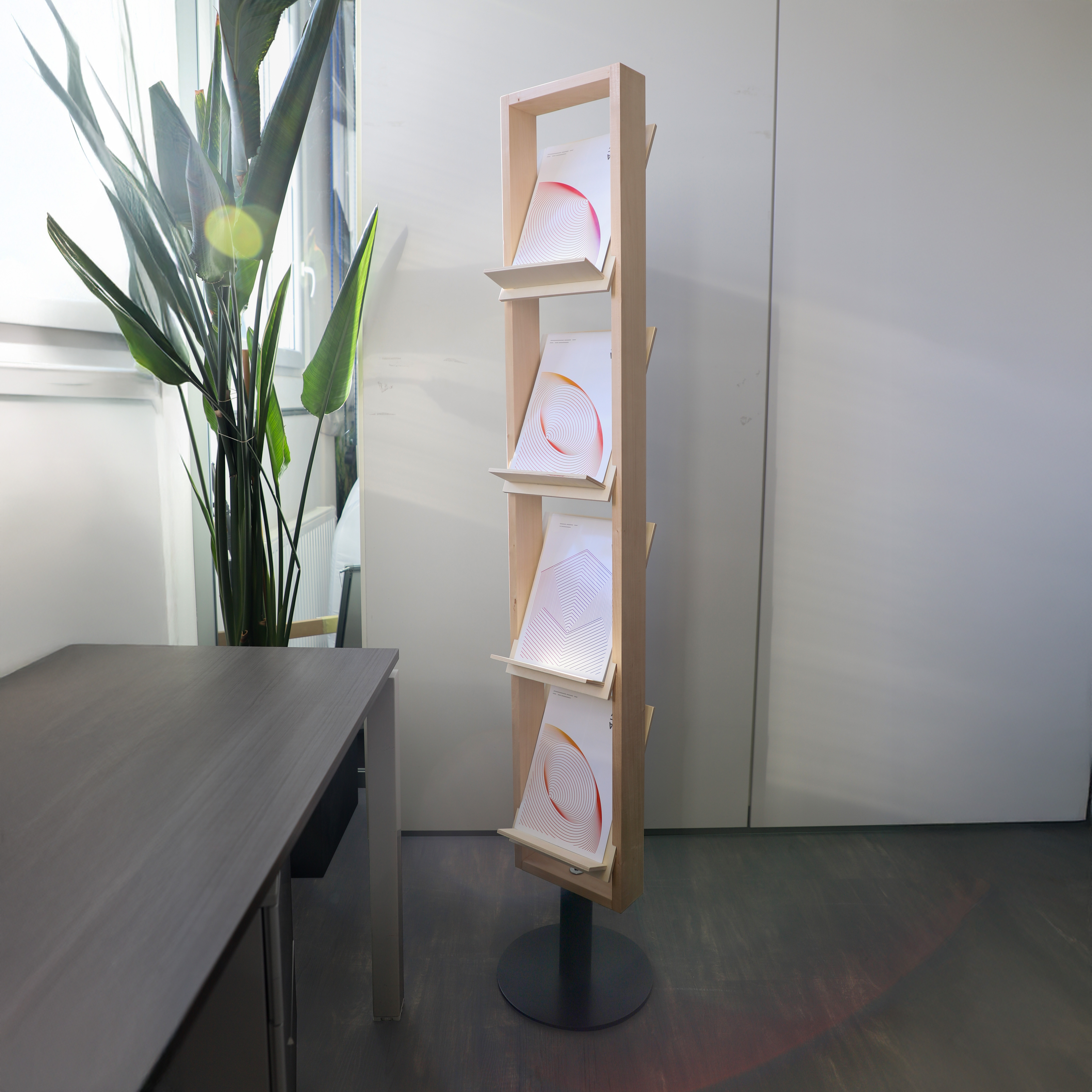 ✔ Freistehender Prospektständer aus Holz mit stabiler Metallbasis