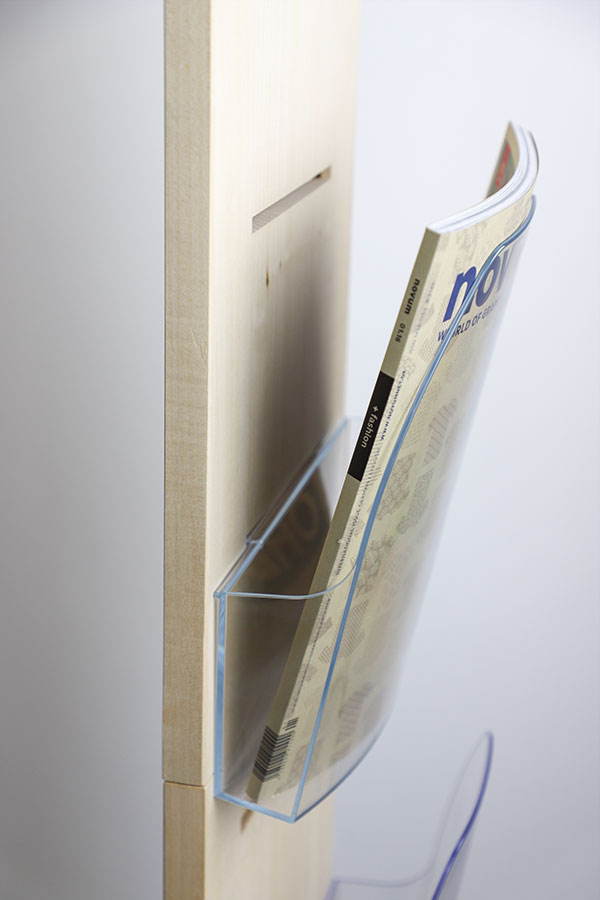 Das clevere Stecksystem ermöglicht einen schnellen, werkzeugfreien Aufbau des Prospekthalters.