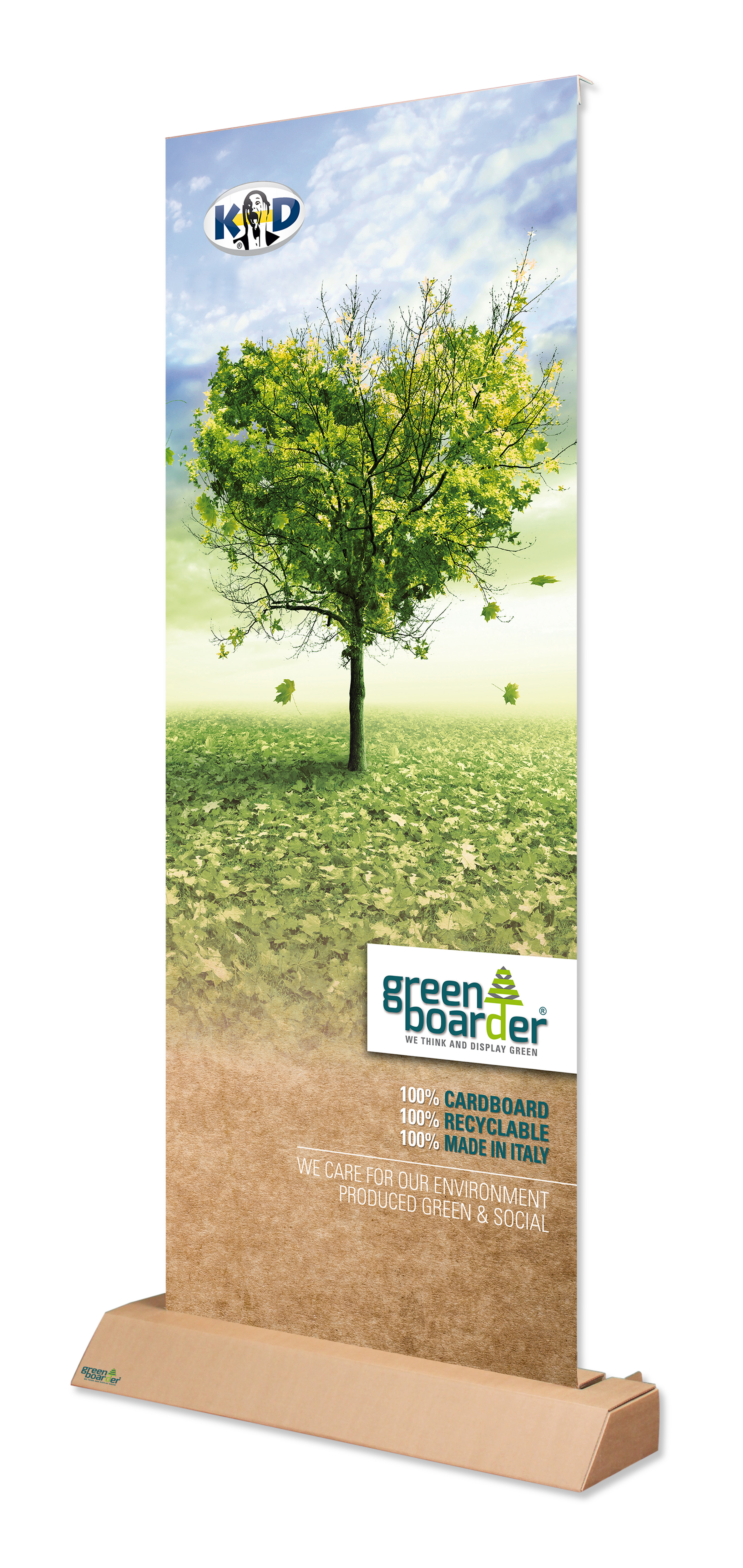 Gesund und nachhaltig wohnen und arbeiten wird für viele Menschen immer wichtiger. Viele Hersteller folgen dem Trend und nehmen Öko-Möbel verstärkt in ihr Sortiment auf, einige haben sich komplett auf Öko-Möbel spezialisiert. Doch was passiert im Bereich der Werbetechnik? Der ökologische Roll-up Greenboarder trägt dazu bei, das Klima zu verbessern, denn zum einen wird er zu 100% aus zertifizierten nachwachsenden Rohstoffen wie umweltfreundlichen Karton und Papier, zum Großteil aus kontrolliertem Anbau produziert, zum anderen auch im Druck ohne Schadstoffe, ohne PVC und nur mit lösungsmittelfreien Druckverfahren.