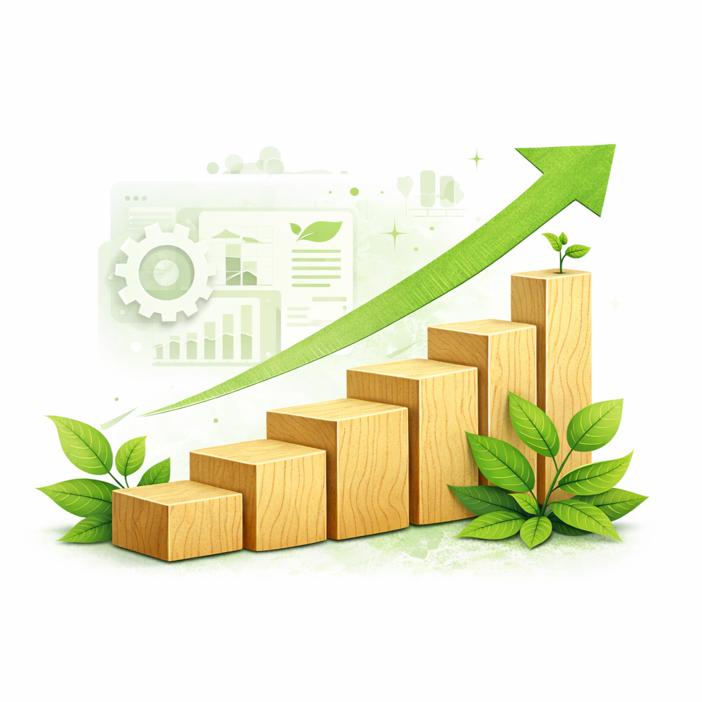 Wir erweitern unser Sortiment gezielt um Materialien mit geringerer Umweltbelastung – zum Beispiel innovative Holzalternativen und ressourcenschonende Werkstoffe.