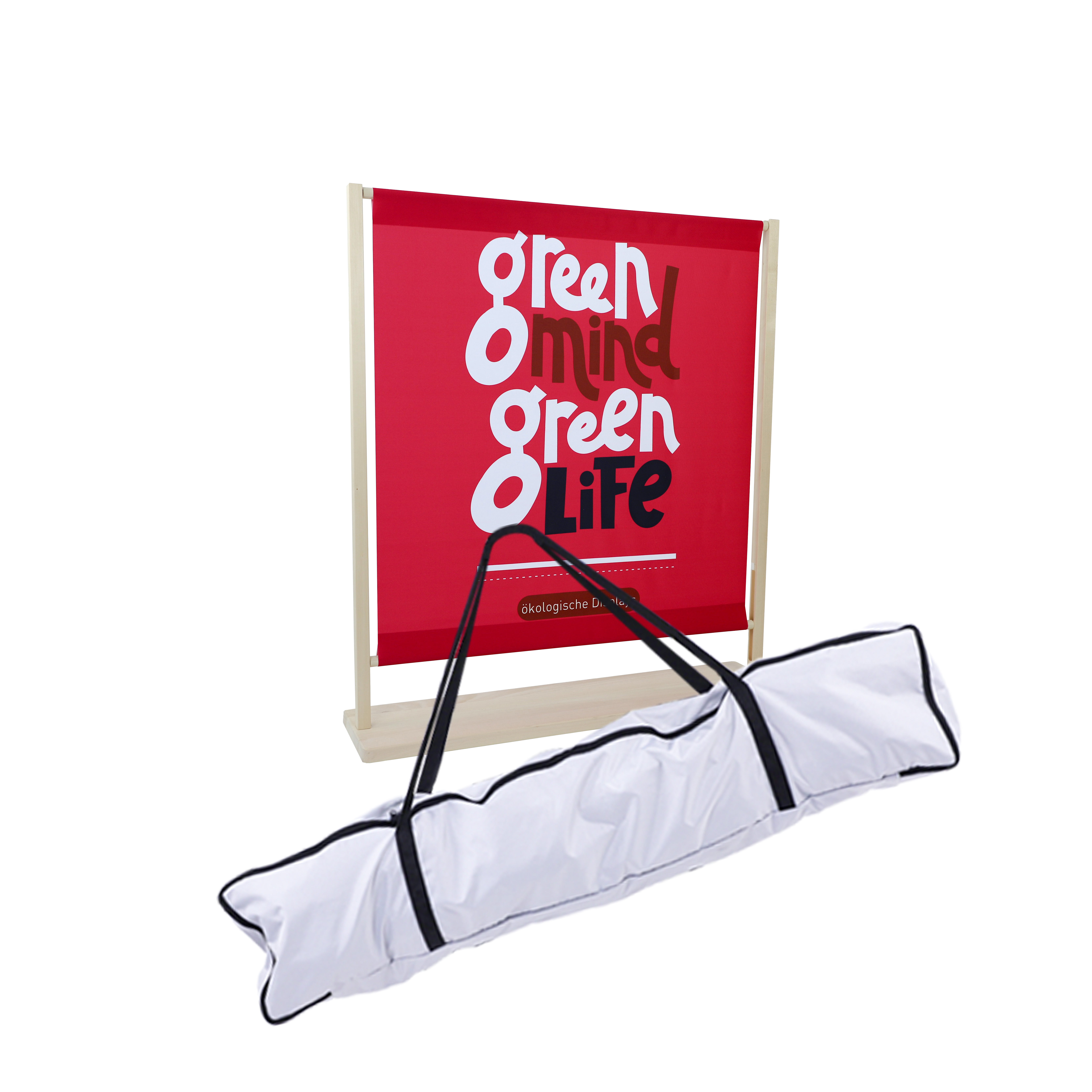 Woodboarder Mini – das tischhohe Bannerdisplay aus Vollholz mit Stoff-Druck