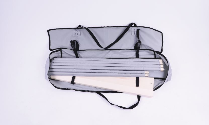 Für Transport und Lagerung gibt es eine nachhaltige Tragetasche aus recycelten PET-Flaschen die praktisch, leicht und umweltschonend ist.